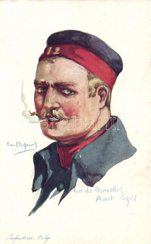 Belgian military, infantryman; Visé paris No. 5. s: Em. Dupuis (cut) https://www.darabanth.com/de/457-Fernauktion/457.0/Ansichtskarten/Militaria~1000032/Belgian-military-infantryman-Vise-paris-No-5-s-Em-Dupuis-cut~II531700
