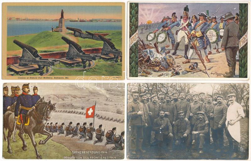 9 db RÉGI katonai képeslap vegyes minőségben: francia, német, svájci, amerikai / 9 pre-1945 military postcards in mixed quality: French, German, Swiss, American