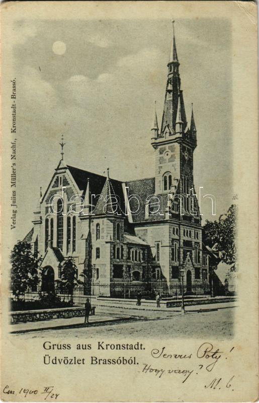 1900 Brassó, Kronstadt, Brasov; Református templom este. Julius Müller... https://www.darabanth.com/de/457-Fernauktion/457.0/Ansichtskarten/Siebenburgen~1000006/1900-Brasso-Kronstadt-Brasov-Reformatus-templom-este-Julius-Muller-utoda-kiadasa-Calvinis~II3056179