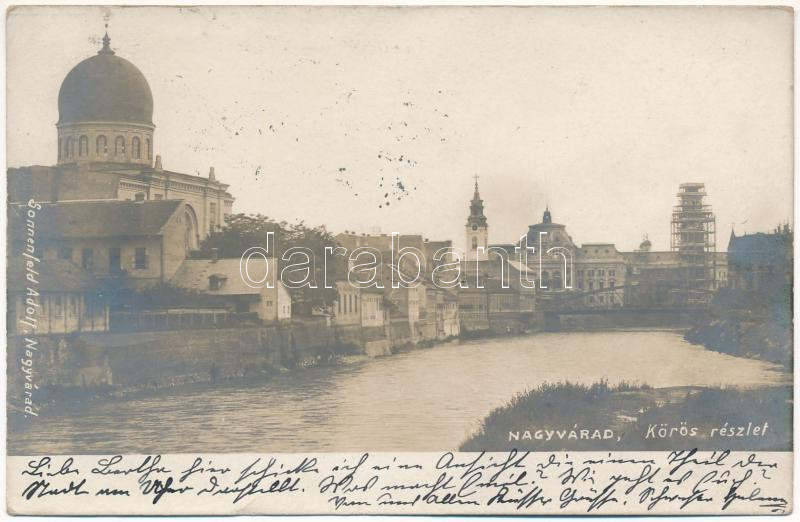1903 Nagyvárad, Oradea; Körös részlet, zsinagóga. Sonnenfeld Adolf kia... https://www.darabanth.com/de/457-Fernauktion/457.0/Ansichtskarten/Siebenburgen~1000006/1903-Nagyvarad-Oradea-Koros-reszlet-zsinagoga-Sonnenfeld-Adolf-kiadasa-Cris-riverside-s~II3059927