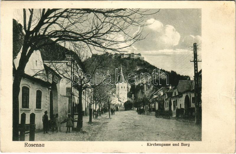 1924 Barcarozsnyó, Rozsnyó, Rosenau, Rasnov; Templom utca és vár / Kir... https://www.darabanth.com/de/457-Fernauktion/457.0/Ansichtskarten/Siebenburgen~1000006/1924-Barcarozsnyo-Rozsnyo-Rosenau-Rasnov-Templom-utca-es-var-Kirchengasse-und-Burg-churc~II3024111