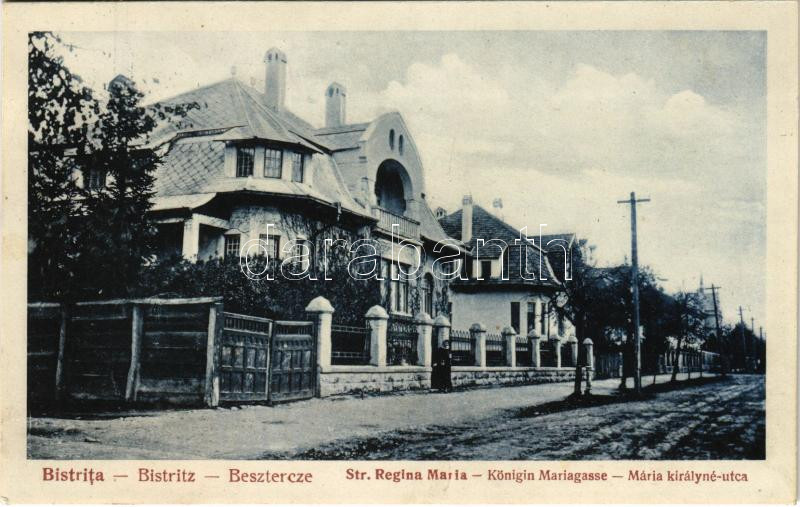 1933 Beszterce, Bistritz, Bistrita; Mária királyné utca, villa / Str. Regina Maria / Königin Mariastrasse / street view, villa (ragasztónyom / glue marks)
