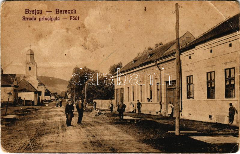 1940 Bereck, Bereczk, Bretcu; Fő út, templom. Khell Bogdán utóda fia L... https://www.darabanth.com/de/457-Fernauktion/457.0/Ansichtskarten/Siebenburgen~1000006/1940-Bereck-Bereczk-Bretcu-Fo-ut-templom-Khell-Bogdan-utoda-fia-Laszlo-kiadasa-Strada-~II3017871