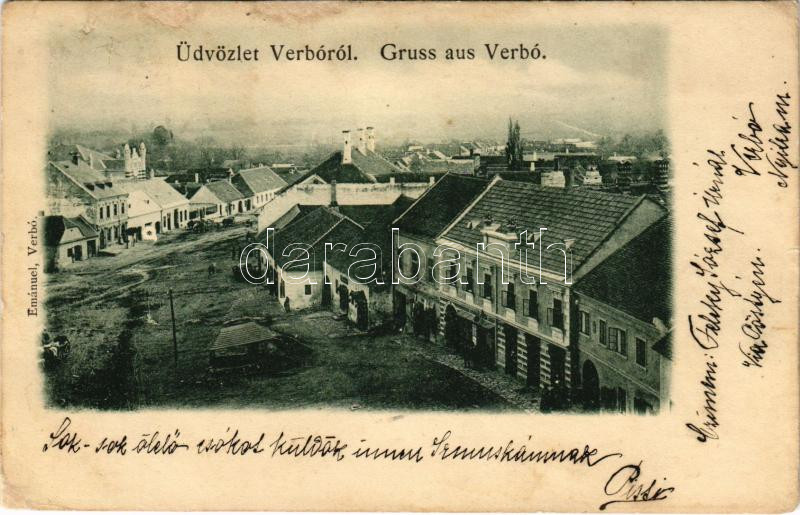 Beschreibung: 1900 Verbó, Vrbové; Fő tér, zsinagóga. Emánuel kiadása / main square, synagogue (r)