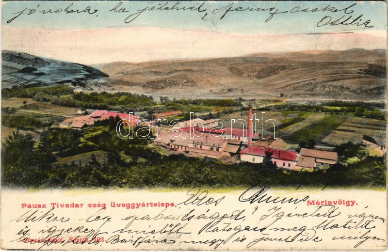 1905 Máriavölgy, Sárosmáriavölgy Bártfa mellett (Kőtelep, Kruzslyó, Kruzlov); Pausz Tivadar cég üveg gyár telepe. Divald Adolf 193. / glass factory near Bardejov