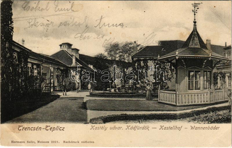 1906 Trencsénteplic, Trencianske Teplice; Kastély udvar, kádfürdők. He... https://www.darabanth.com/de/457-Fernauktion/457.0/Ansichtskarten/Slowakei~1000007/1906-Trencsenteplic-Trencianske-Teplice-Kastely-udvar-kadfurdok-Hermann-Seibt-kiadasa-Ka~II3059665