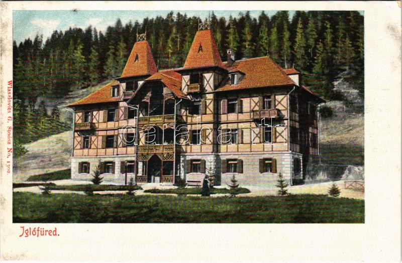 Beschreibung: Iglófüred, Bad Zipser Neudorf, Spisská Nová Ves Kupele, Novovesské Kúpele; Hungária villa. Wlaszlovits Gusztáv kiadása (EK)