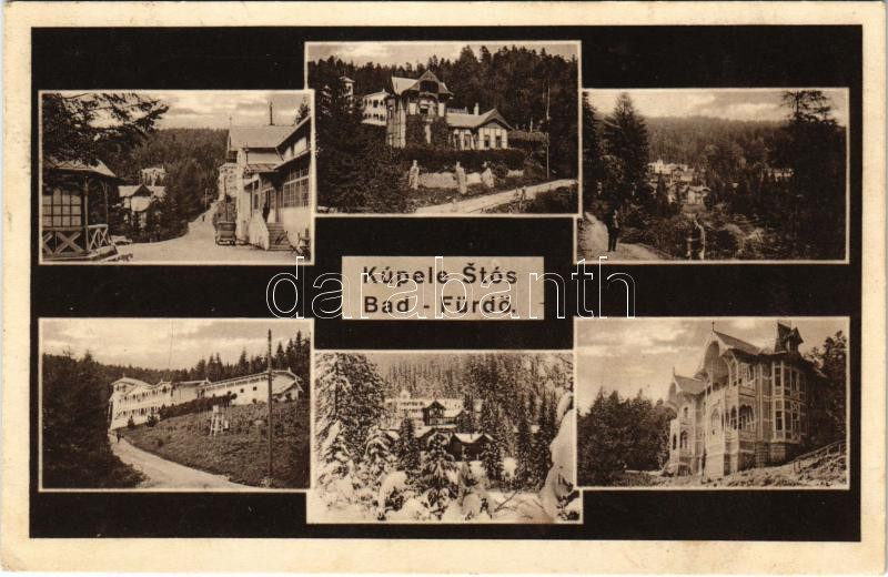 Beschreibung: Stószfürdő, Stoósz-fürdő, Kúpele Stós; mozaiklap, nyaralók, villák, automobil / multi-view postcards, villas, automobile