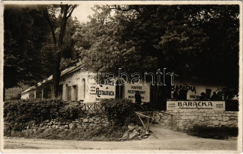 Trencsénteplic, Trencianske Teplice; Baracka Kavárna Restaurace / Bara... https://www.darabanth.com/de/457-Fernauktion/457.0/Ansichtskarten/Slowakei~1000007/Trencsenteplic-Trencianske-Teplice-Baracka-Kavarna-Restaurace-Baracska-kavehaz-es-etterem~II3055639