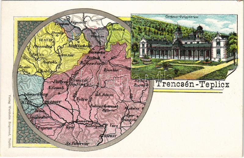 Trencsénteplic, Trencianske Teplice; Gyógyterem, fürdő, térkép. Werthe... https://www.darabanth.com/de/457-Fernauktion/457.0/Ansichtskarten/Slowakei~1000007/Trencsenteplic-Trencianske-Teplice-Gyogyterem-furdo-terkep-Wertheim-Zsigmond-kiadasa-s~II3055723