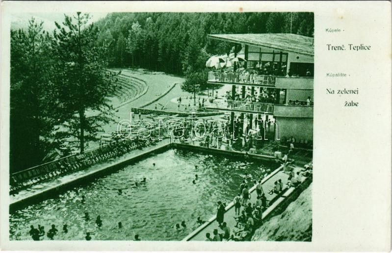 Trencsénteplic, Trencianske Teplice; Kúpaliste Na zelenej zabe / fürdő... https://www.darabanth.com/de/457-Fernauktion/457.0/Ansichtskarten/Slowakei~1000007/Trencsenteplic-Trencianske-Teplice-Kupaliste-Na-zelenej-zabe-furdo-spa-swimming-pool~II3055619