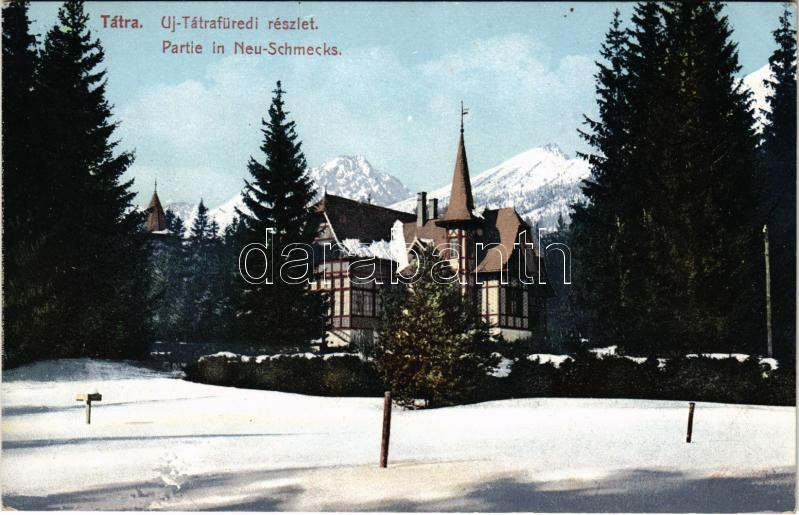 Beschreibung: Újtátrafüred, Neu-Schmecks, Novy Smokovec (Magas-Tátra, Vysoké Tatry); villa télen. Cattarino S. utóda Földes Samu kiadása 240. sz. / villa in winter
