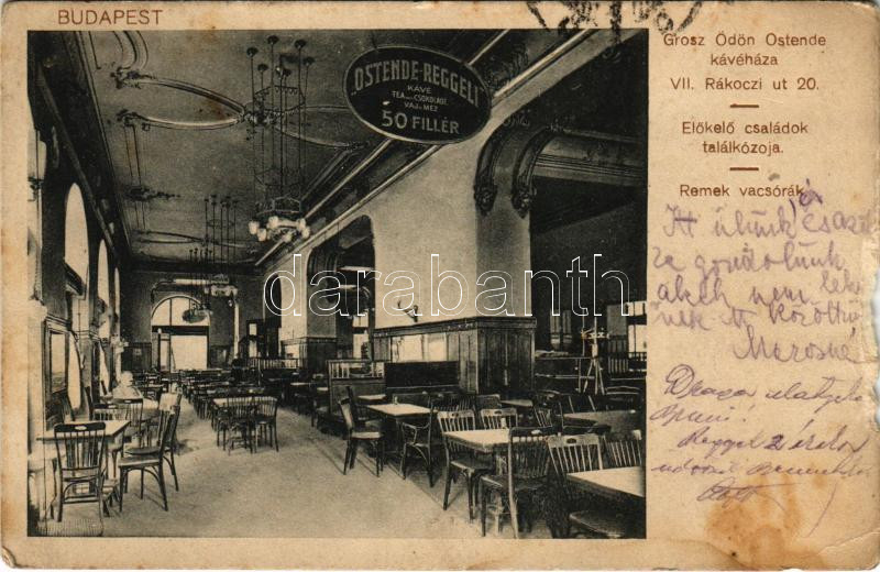 1923 Budapest VII. Grosz Ödön Ostende kávéháza, belső. Rákóczi út 20. ... https://www.darabanth.com/de/457-Fernauktion/457.0/Ansichtskarten/Ungarn~1000005/1923-Budapest-VII-Grosz-Odon-Ostende-kavehaza-belso-Rakoczi-ut-20-szakadas-tear~II3054787