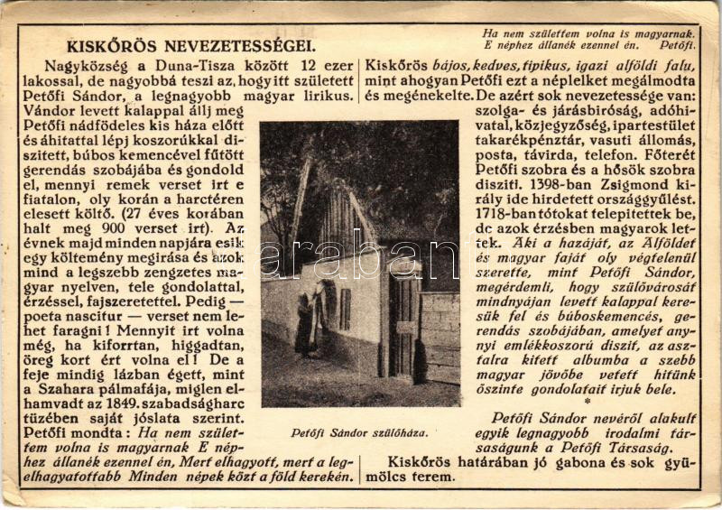 1944 Kiskőrös, Város nevezetességei: Petőfi Sándor szülőháza. Farkasfa... https://www.darabanth.com/de/457-Fernauktion/457.0/Ansichtskarten/Ungarn~1000005/1944-Kiskoros-Varos-nevezetessegei-Petofi-Sandor-szulohaza-Farkasfalvi-Kornel-kiadasa-~II3054713