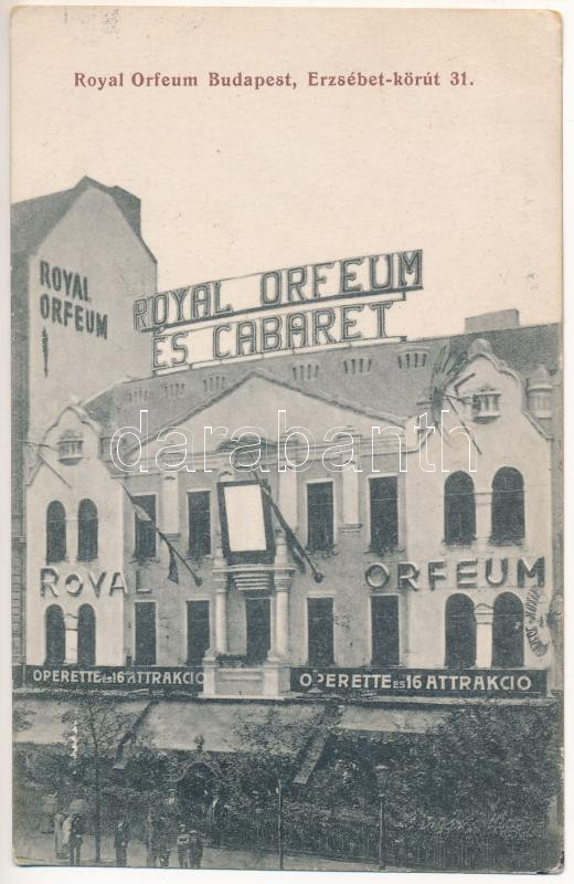 Budapest VII. Royal Orfeum és Cabaret, Operette és 16 attrakció, Erzsé... https://www.darabanth.com/de/457-Fernauktion/457.0/Ansichtskarten/Ungarn~1000005/Budapest-VII-Royal-Orfeum-es-Cabaret-Operette-es-16-attrakcio-Erzsebet-korut-31-EK~II3057870