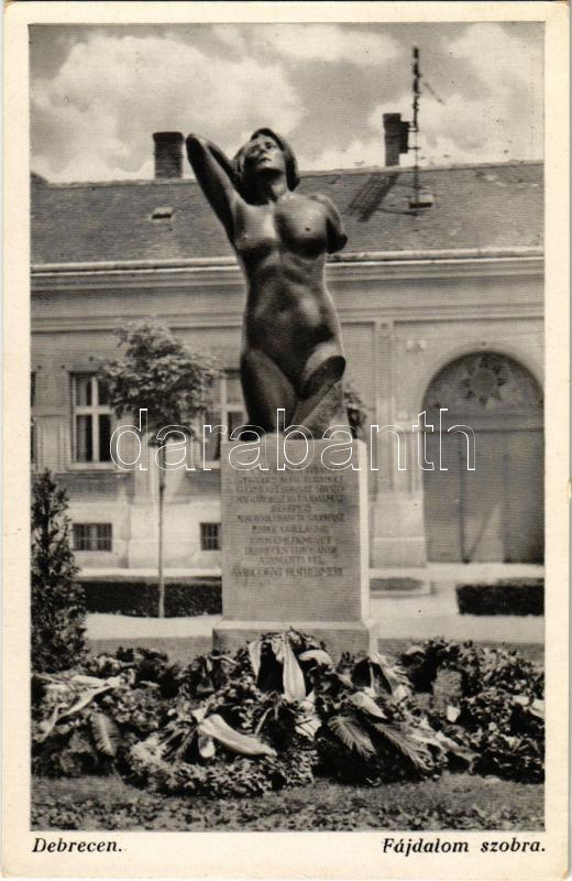 Debrecen, Magyar Fájdalom szobor (A felszabadulás után eltűnt a térről, közel negyven évig őrizték egy raktárban, csak a talapzat állt a helyén, majd 2000-ben állították fel újra)