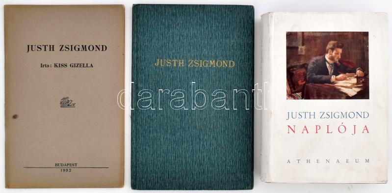 Kis Gizella: Justh Zsigmond. (2 példányban). Bp., 1932, szerzői kiadás (Nagy Sándor és András-ny.), 36 p. Első kiadás. Kiadói tűzött papírkötés, ill. aranyozott egészvászon-kötés. + Justh Zsigmond naplója. Sajtó alá rendezte: Halász Gábor. Bp., [1941], Athenaeum, 1 t. + 429 p. Első kiadás. Kiadói aranyozott egészvászon-kötés, szakadt kiadói papír védőborítóban.