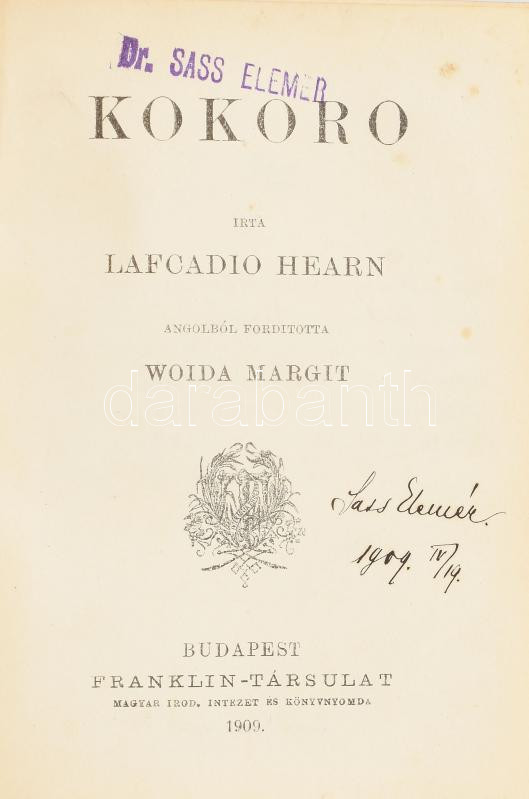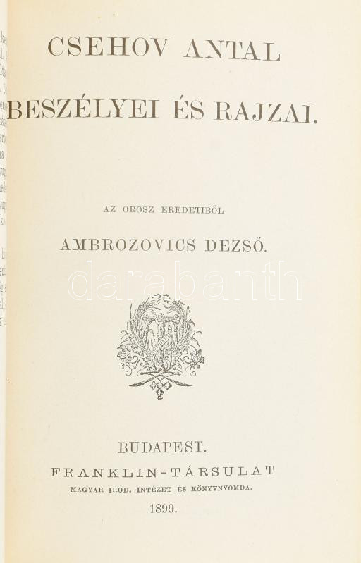Kolligátum az Olcsó Könyvtár 5 kötetéből: Andersen: Regék és mesék. Ford.: Milesz Béla. Bp., 1907, Franklin, 132 p. Második kiadás.; Csehov Antal beszélyei és rajzai. Ford.: Ambrozovics Dezső. Bp., 1899, Franklin, 167+1 p.; Lafcadio Hearn: Kokoro. Ford.: Woida Margit. Bp., 1909, Franklin, 258+1 p.; Eckstein Ernő: Aphrodite. Egy görög művész regénye. Ford.: Sasváry Ármin. Bp., 1887, Franklin, 207 p.; Björnstjerne Björnson: Leonarda. Színmű négy felvonásban. Ford.: Kárffy Titusz. Bp., 1887, Franklin, 148 p.;