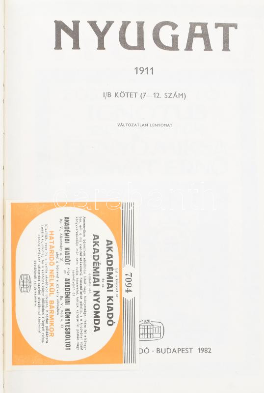 Nyugat 1911-es évfolyam reprint kiadásának 1/A és 1/B kötete, Bp., Aka... https://www.darabanth.com/de/457-Fernauktion/457.0/Bucher/Bucher-Andere-kuriositaten~1500037/Nyugat-1911-es-evfolyam-reprint-kiadasanak-1A-es-1B-kotete-Bp-Akademiai-1982-kiadoi-eg~II3060790