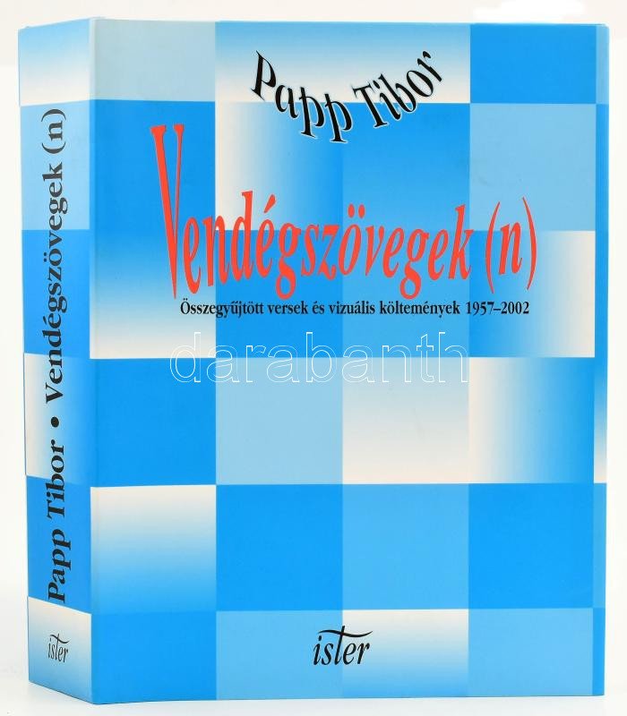 Papp Tibor: Vendégszövegek (n). Összegyűjtött versek és vizuális költemények 1957-2002. Bp., 2003., Ister. Kiadói kartonált papírkötés, kiadói papír védőborítóban. A szerző, Papp Tibor (1936- 2018) József Attila-díjas író, költő, műfordító, tipográfus, szerkesztő, a Magyar Műhely tagja által Bujdosó Alpár (1935-2021) költő, mérnök, a Magyar Műhely szerkesztője a magyar avantgarde kiemelkedő alakja részére DEDIKÁLT példány.