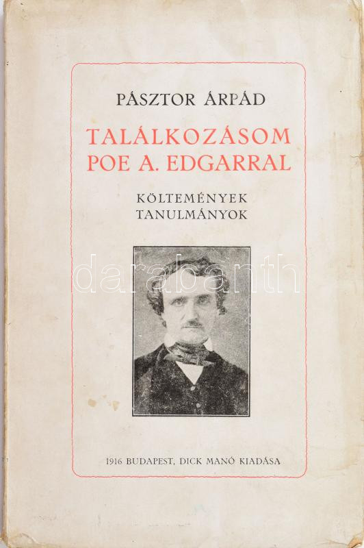 Pásztor Árpád: Találkozásom Poe A. Edgarral. Költemények, tanulmányok.... https://www.darabanth.com/de/457-Fernauktion/457.0/Bucher/Bucher-Andere-kuriositaten~1500037/Pasztor-Arpad-Talalkozasom-Poe-A-Edgarral-Koltemenyek-tanulmanyok-Bp-1916-Dick-Mano~II3030608