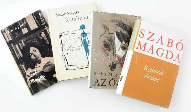 Szabó Magda 3 műve: Katalin utca.;Az őz.; Régimódi történet. Bp., 1969-1972-1981., Szépirodalmi. Kiadói egészvászon-kötés, kiadói papír védőborítóban, az egyik volt könyvtári példány, szakadt borítókkal.; + Kónya Judit: Szabó Magda alkotásai és vallomásai tükrében. Bp.,1977,Szépirodalmi. Kiadói papírkötés, volt könyvtári példány.;