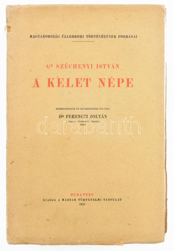 Széchenyi István: A kelet népe. Szerk. és bevezetéssel ellátta: Dr. Ferenczi Zoltán. Gróf Széchenyi István összes munkái. V. köt. Fontes Historiae Hungariae Aevei Recentioris. Bp., 1925, MTA, 1 t.+4+684 p. Kiadói papírkötés, szakadt, foltos borítóval.