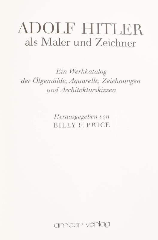 Billy. F. Price: Adolf Hitler als Maler und Zeichner. Ein Werkkatalog der Ölgemälde, Aquerelle, Zeichnungen und Architekturskizzen. Hrsg. von - -. Zug, 1983, Gallant Verlag AG. Német nyelven. Gazdag képanyaggal illusztrált. Kiadói egészvászon-kötés, kiadói papír védőborítóban.