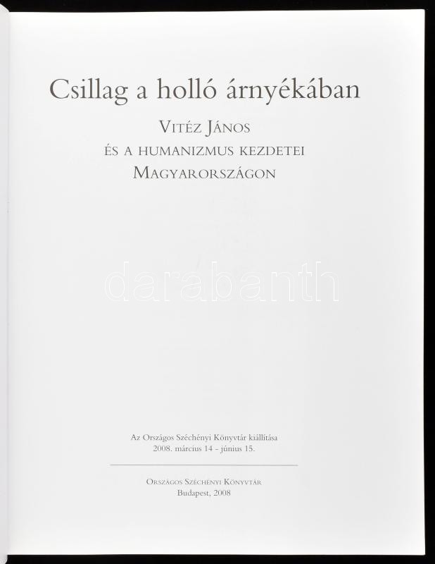 Csillag a holló árnyékában. Vitéz János és a humanizmus kezdetei Magyarországon. (Az Országos Széchényi Könyvtár kiállítása, 2008. március 14 - június 15). Bp., 2008, Országos Széchényi Könyvtár. Gazdag képanyaggal illusztrálva. Kiadói papírkötés.