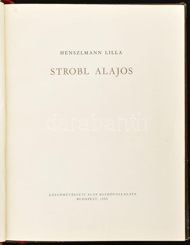 Henszlmann Lilla: Strobl Alajos. Magyar Mesterek sorozat. Bp., 1955., Képzőművészeti Alap. A művész munkáinak fekete-fehér reprodukcióival. Kiadói félvászon-kötés, kissé sérült.