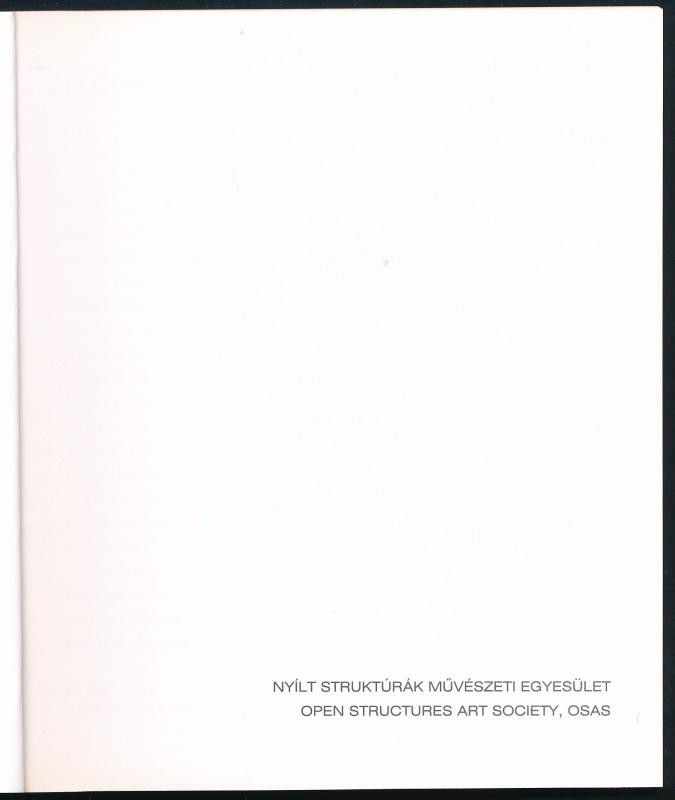 Maurer Dóra, Prosek Zoltán (szerk.): Nyílt Struktúrák Művészeti Egyesület. Bp., 2006, Nyílt Struktúrák Művészeti Egyesület. Magyar és angol nyelven. Színes és fekete-fehér képekkel, többek közt Konok Tamás, Maurer Dóra, Vera Molnár, Nádler István műveinek reprodukcióival illusztrált. Kiadói papírkötés, jó állapotban.