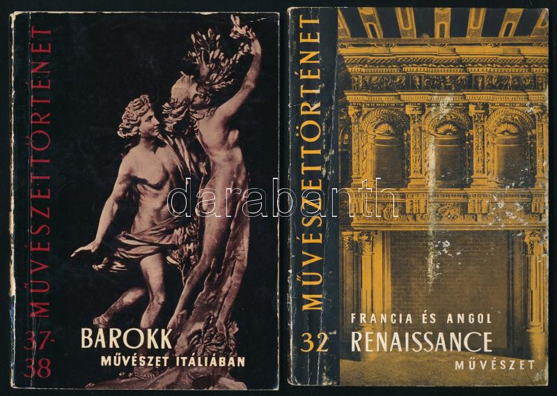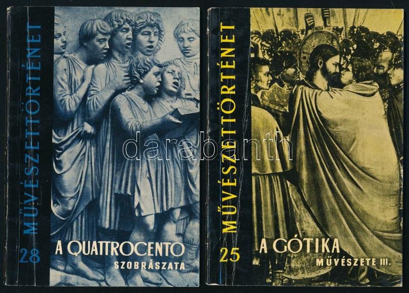 Művészettörténet sorozat 5 kötete (25,28, 32,37-38, 39): Csemegi József: A gótika művészete III. Itália gótikus művészete és kapcsoltai.; Eszláry Éva. A quatrocento szobrászata.; Ybl Ervin: A francia és angol renaissance művészet.; Czobor Ágnes: Barokk művészet Itáliában.; Ybl Ervin: Francia és angol művészet a barokk századokban. Bp.,1958-1961,Gondolat - Képzőművészeti Alap. Kiadói papírkötés, kopott borítókkal.
