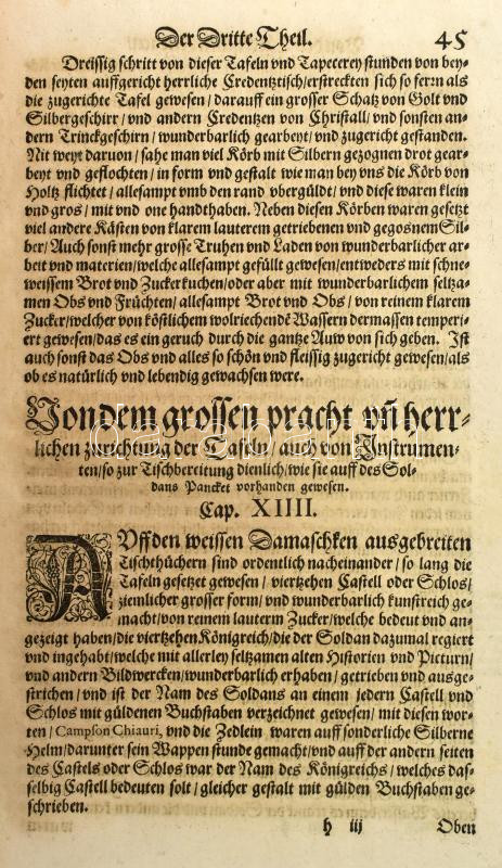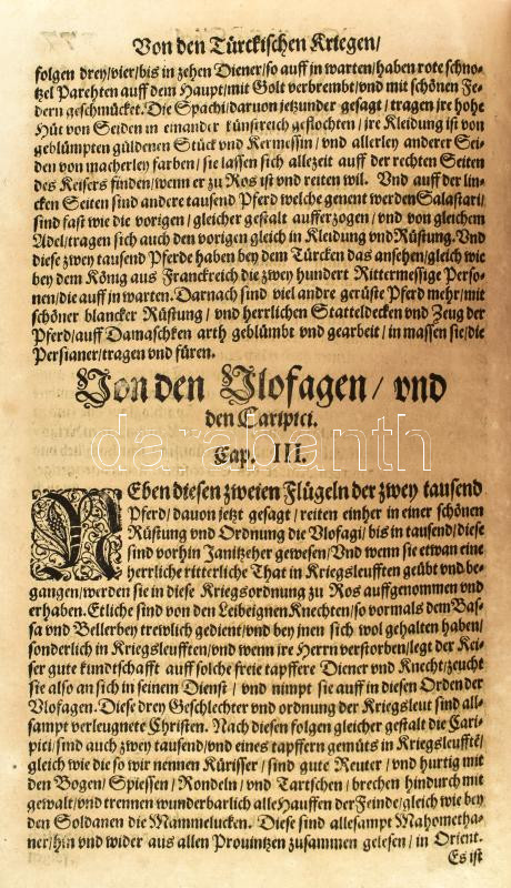 Diaz Tanco, V., G. Menavino & J. Aventinus (Turmair) : Türckische Historien, oder warhafftige Beschreibung aller Türcken ankunfft, Regierung, Königen, und Keisern, Kriegen, Schlachten, Victorien. Frankfurt, 1572 Schmidt für Hahn, 1-3 kötet 85,105,55 p. Fametszetű címképekkel és potrékkal. Első néhány lapon szúrágás nyomaival. Igényes modern félpergamen kötésben