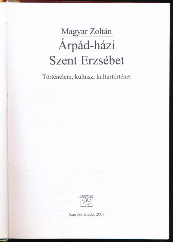 Magyar Zoltán: Árpád-házi Szent Erzsébet. Történelem, kultusz, kultúrt... https://www.darabanth.com/de/457-Fernauktion/457.0/Bucher/Bucher-Geschichte~1500020/Magyar-Zoltan-Arpad-hazi-Szent-Erzsebet-Tortenelem-kultusz-kulturtortenet-Bp-2007-~II3054782