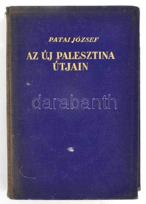 Patai József: Az új Palesztina útjain. Bp., [1938], Múlt és Jövő, 289+3 p.+ 32 t. Fekete-fehér fotókkal illusztrált. Kiadói aranyozott egészvászon-kötés, kopott borítóval, a gerincen sérülésekkel, néhány lapon szakadással, sérüléssel.