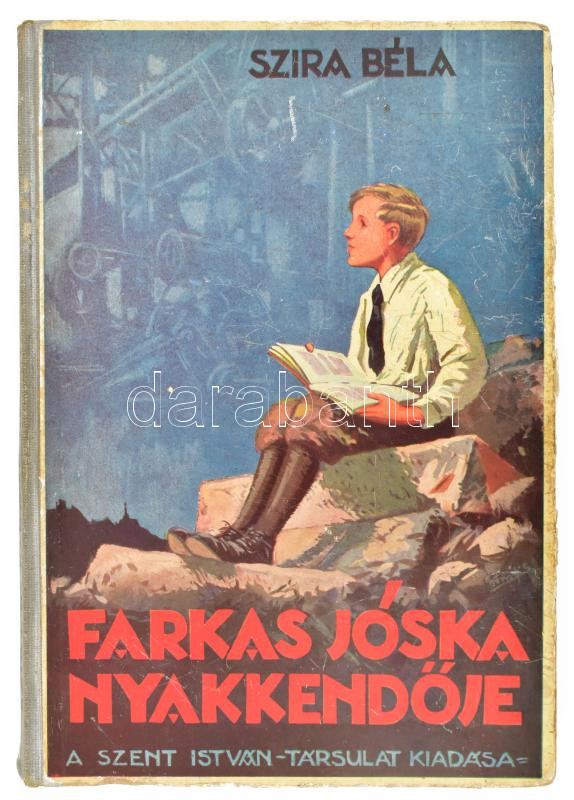 Szira Béla: Farkas Jóska nyakkendője. Ifjúsági regény 14-15 éves fiúk részére. Györgyfi György rajzaival. Bp., [1940], Szent István-Társulat, 152 p. Kiadói illusztrált félvászon-kötés, kissé viseltes borítóval, néhány kissé foltos lappal.