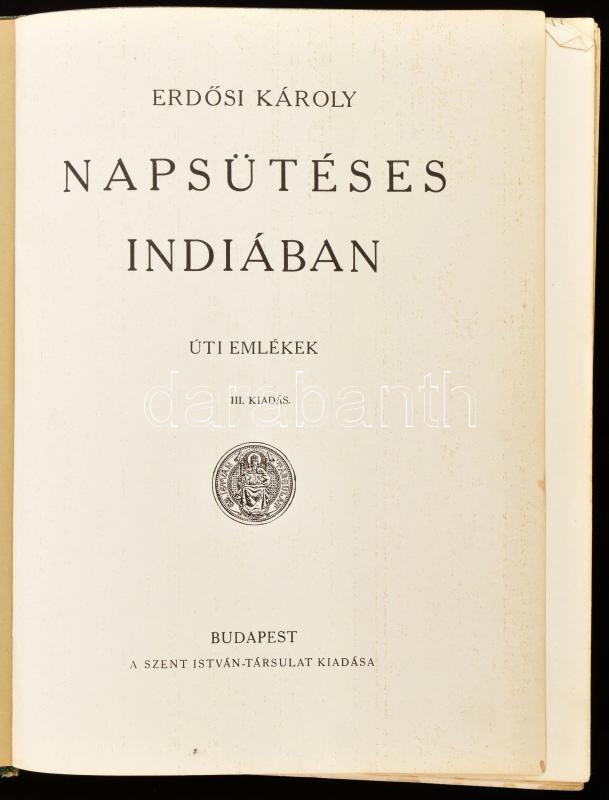 Erdősi Károly: Napsütéses Indiában. Úti emlékek. Bp.,én., Szent István... https://www.darabanth.com/de/457-Fernauktion/457.0/Bucher/Bucher-Reise-und-Ortgeschichte~1500017/Erdosi-Karoly-Napsuteses-Indiaban-Uti-emlekek-Bp-en-Szent-Istvan-Tarsulat-Harmadik-~II3056443
