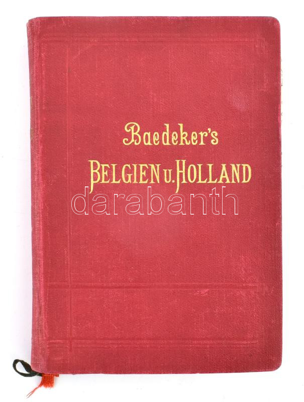 Karl Baedeker: Belgien und Holland nebst dem Großherzogtum Luxemburg. Leipzig, 1904, Karl Baedeker. Dreiundzwanzigste Auflage. Német nyelven. Kihajtható térképekkel. Kiadói aranyozott egészvászon-kötés, festett lapélekkel.
