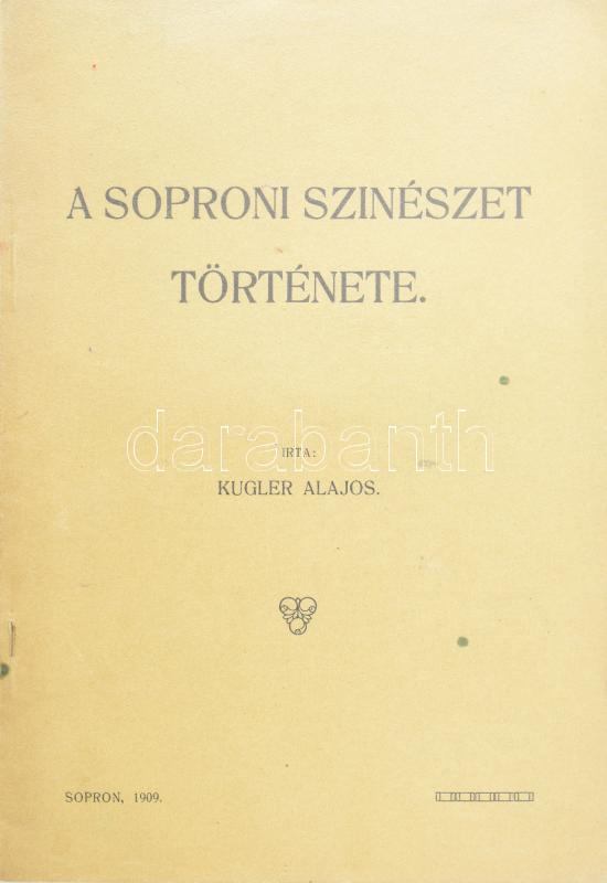 Kugler Alajos: A soproni színészet története. Sopron, 1909., ("Petőfi"-ny.),46 p. Kiadói papírkötés.