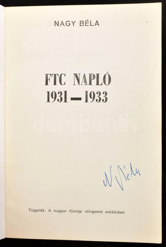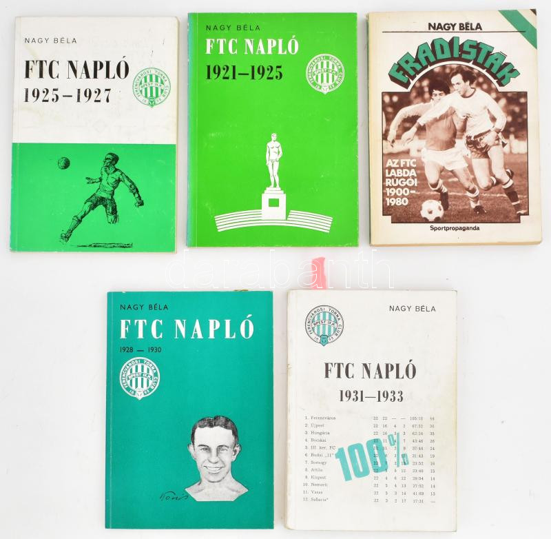Nagy Béla 5 műve: FTC napló 1921-1925, 1925-1927, 1928-1930, 1931-1933. + Fraditsák. Az FTC labdarúgói 1900-1980. Zalaegerszeg - Bp., 1977-1978-1981, Magyar Hirdető - Egyetemi-ny. Az FTC napló 1931-1933. Nagy Béla által ALÁÍRT példány. Kiadói papírkötés.