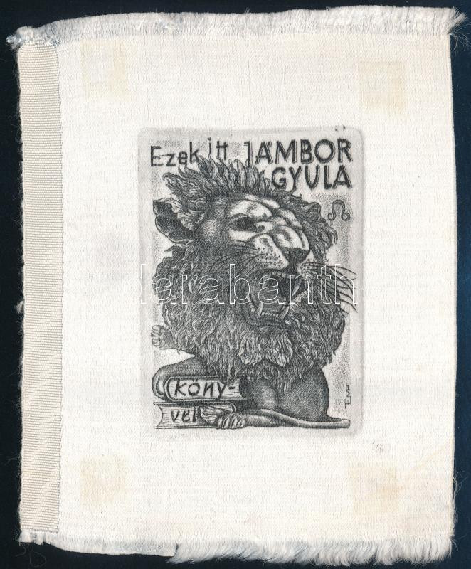 Tempinszky István (1907-1979): Jámbor Gyula ex libris, rézkarc nyomán ... https://www.darabanth.com/de/457-Fernauktion/457.0/Gemalde-und-Grafiken/Ex-libris-Kleingrafik~500005/Tempinszky-Istvan-1907-1979-Jambor-Gyula-ex-libris-rezkarc-nyoman-textilre-keszult-nyomat-~II3049252