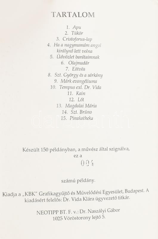 Beschreibung: Vén Zoltán: Kisgaléria. (15 db jelzett rézkarc, mappában). Bp., é.n., "KBK" Grafikagyűjtő és Művelődési Egyesület, 15 t. Kiadói papírmappában, jó állapotban, 21x14,5 cm. Számozott (004./150) példány.