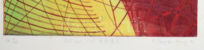 Beschreibung: A Cheng Yan Heung (-): Ciel aprés ciel, 1992. Szitanyomat, papír, jelzett, számozott (2/30). Üvegezett fakeretben. 32,5x28 cm