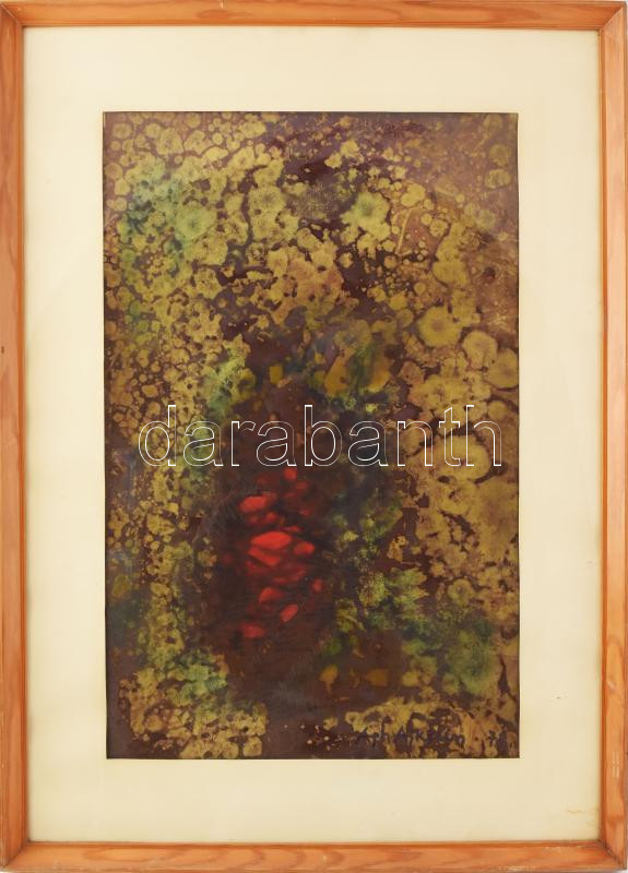 Beschreibung: Ágh Ajkelin Lajos (1907-1995): Sziklavirág (cím nélkül), 1978. Vegyes technika, papír, jelzett. Üvegezett fakeretben, 54×34,5 cm