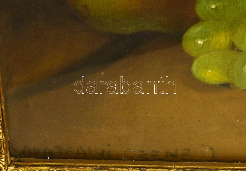 Beschreibung: Apátfalvi Czene János (1904-1984): Csendélet. Olaj, vászon, kartonon, jelezve balra lent. Dekoratív, üvegezett fakeretben. 40×50 cm