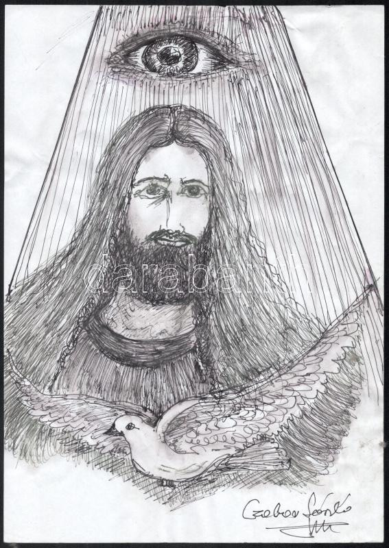 Beschreibung: Czobor László (1920-2004): Szentháromság. Toll, papír. Jelzett. 29x21 cm