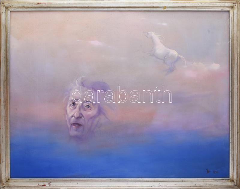 Deák B. Ferenc (1938-2004): Álom paripával (szürrealista kép). Olaj, vászon, jelzett. Dekoratív fa keretben. 75x100 cm. KIZÁRÓLAG SZEMÉLYES ÁTVÉTEL, NEM POSTÁZZUK! / ONLY PERSONAL COLLECTION AT OUR OFFICE!
