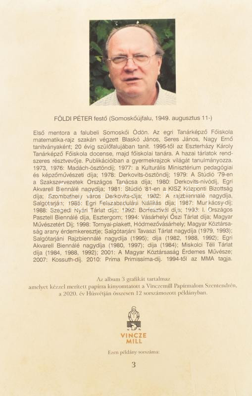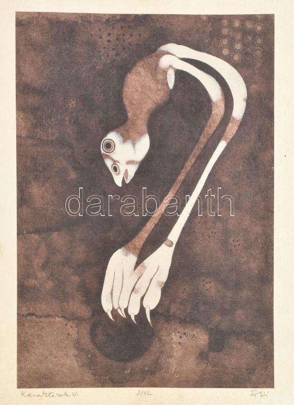 Földi Péter (1947-): Karakterek V. Computer print, merített papír, jelzett, számozott (3/12), 38×25,5 cm. Vincze Mill merített papír mappában és fényképes Földi Péter életrajzzal.