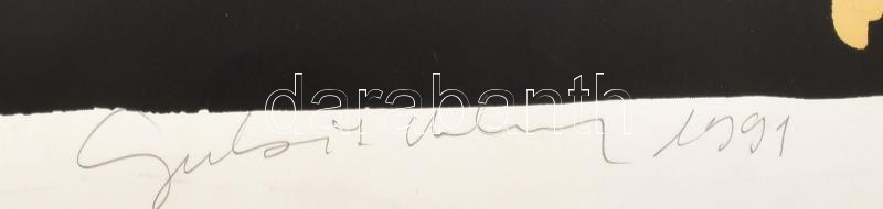 Beschreibung: Gubis Mihály (1948-2006): Éjszakai pillangó, 1991. Szitanyomat, papír, jelzett. Fázisnyomat. Lapszéli szakadásokkal. 64×87,5 cm. Gyűjtői ritkaság!