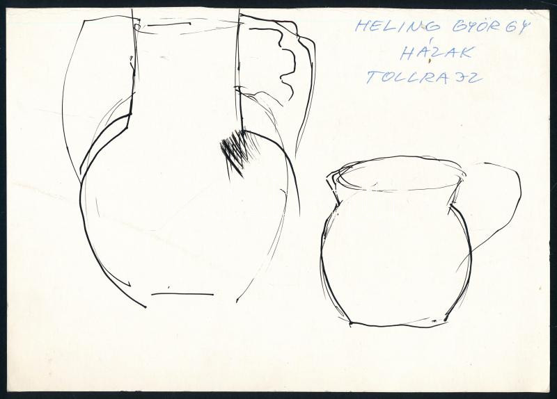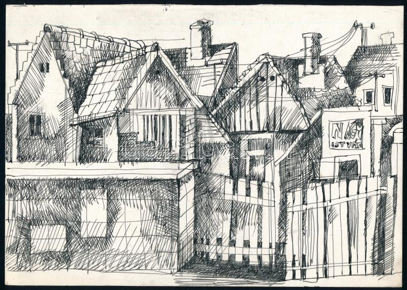 Beschreibung: Heiling György (1939-2014): Házak. Toll, papír, jelzett a hátoldalán, 15x21 cm